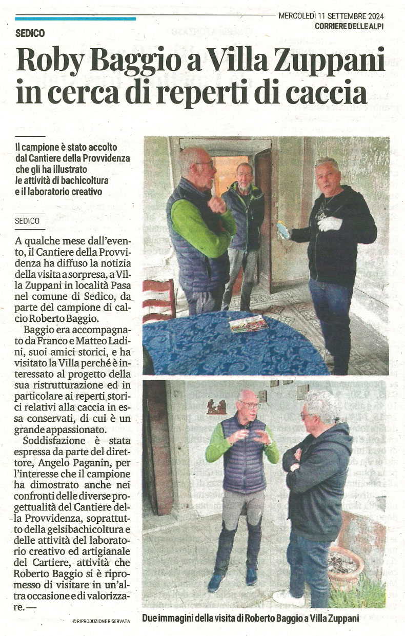 A qualche mese dall’evento, il Cantiere della Provvidenza ha diffuso la notizia della visita a sorpresa, a Villa Zuppani in località Pasa nel comune di Sedico, da parte del campione di calcio Roberto Baggio.