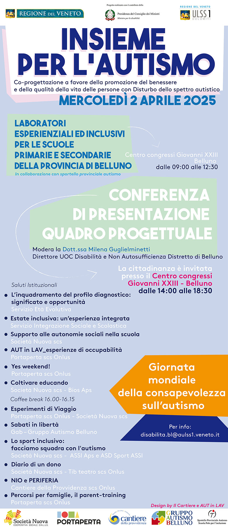 Cantiere della Provvidenza, Cooperativa Porta Aperta, Gruppo autismo Belluno, Il Cartiere, Regione del Veneto, Società Nuova SCS Impresa Sociale, sportello Provinciale Autismo Scuola Polo per l'inclusione, ULSS 1 Dolomiti
